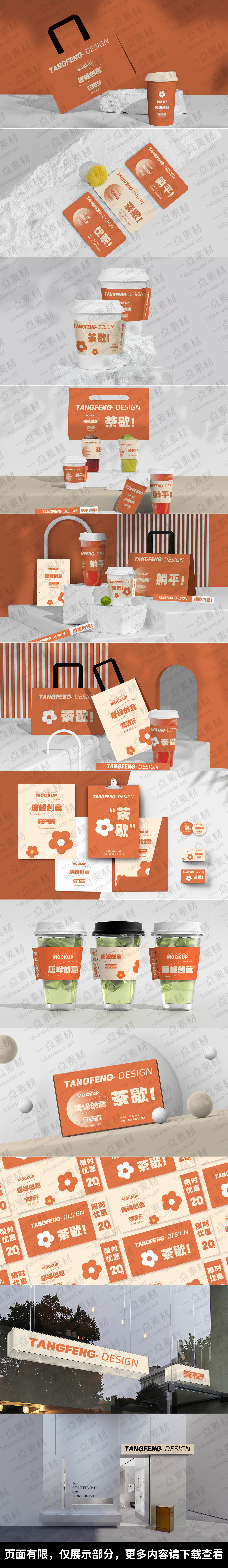 YD0167-文创样机素材奶茶咖啡饮料餐饮品牌VI包装名片logo海报PSD模板