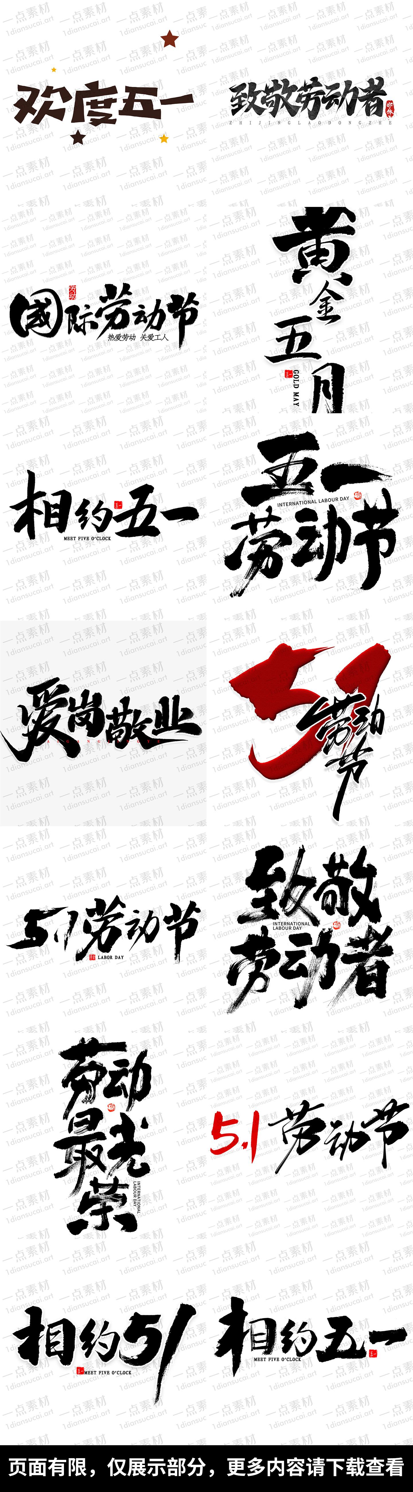 YD0192-51五一国际劳动节手写毛笔字字体艺术字logo标志模板PSD设计素材